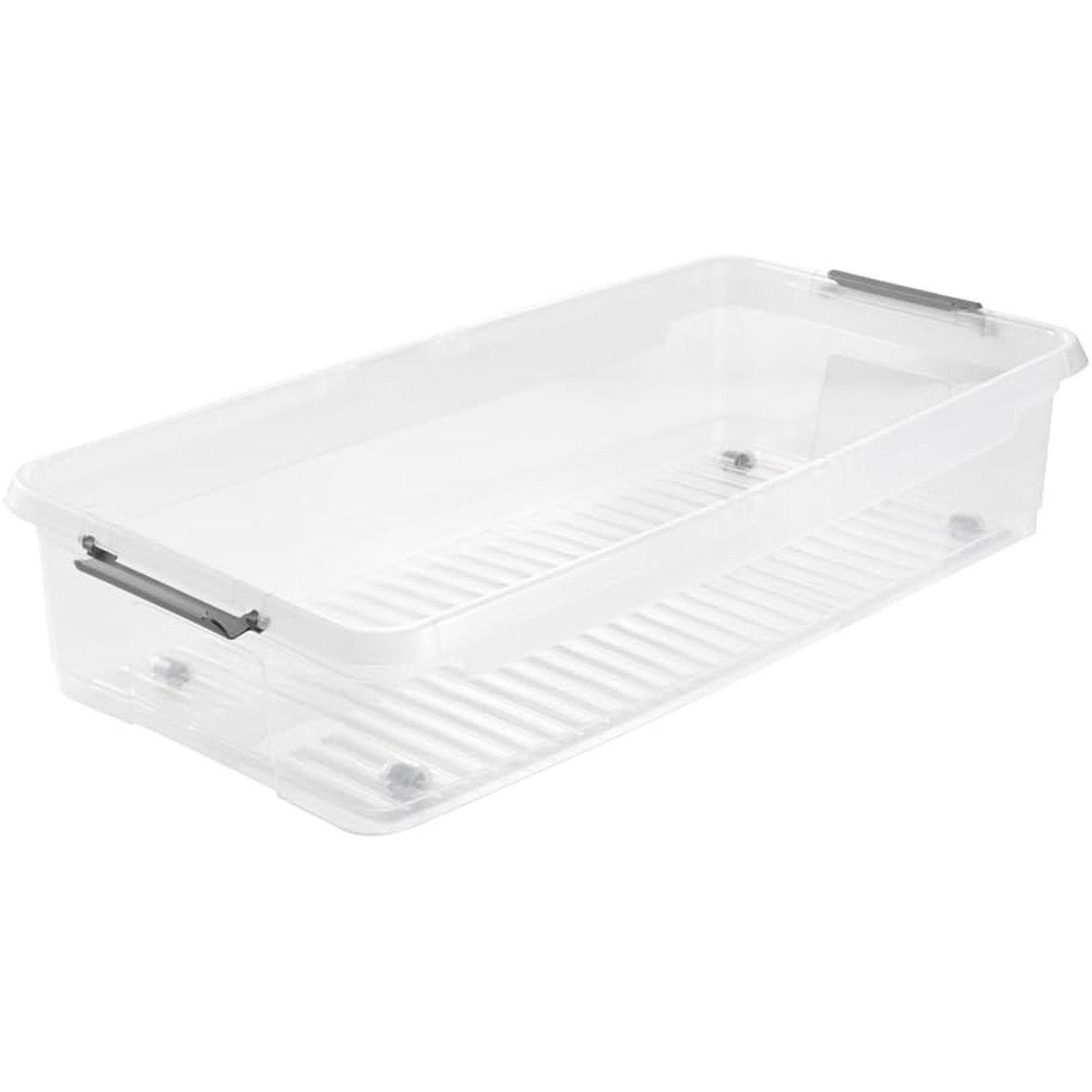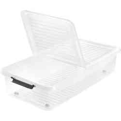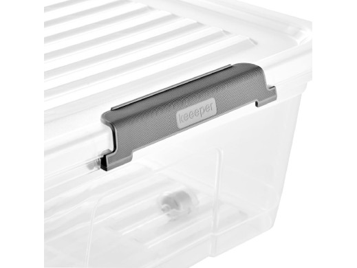 Pojemnik z pokrywką Leo Keeeper, Pojemność 33L, Bezbarwny, Posiada kółka, Pokrywa zamykana klipsami