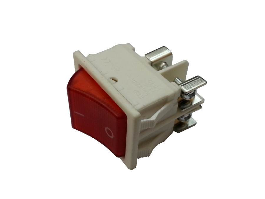 Przełącznik klawiszowy podświetlany 2 pozycje 4 pin szeroki 230V czerwony śrubki montażowey KND6 obudowa biały