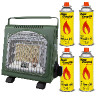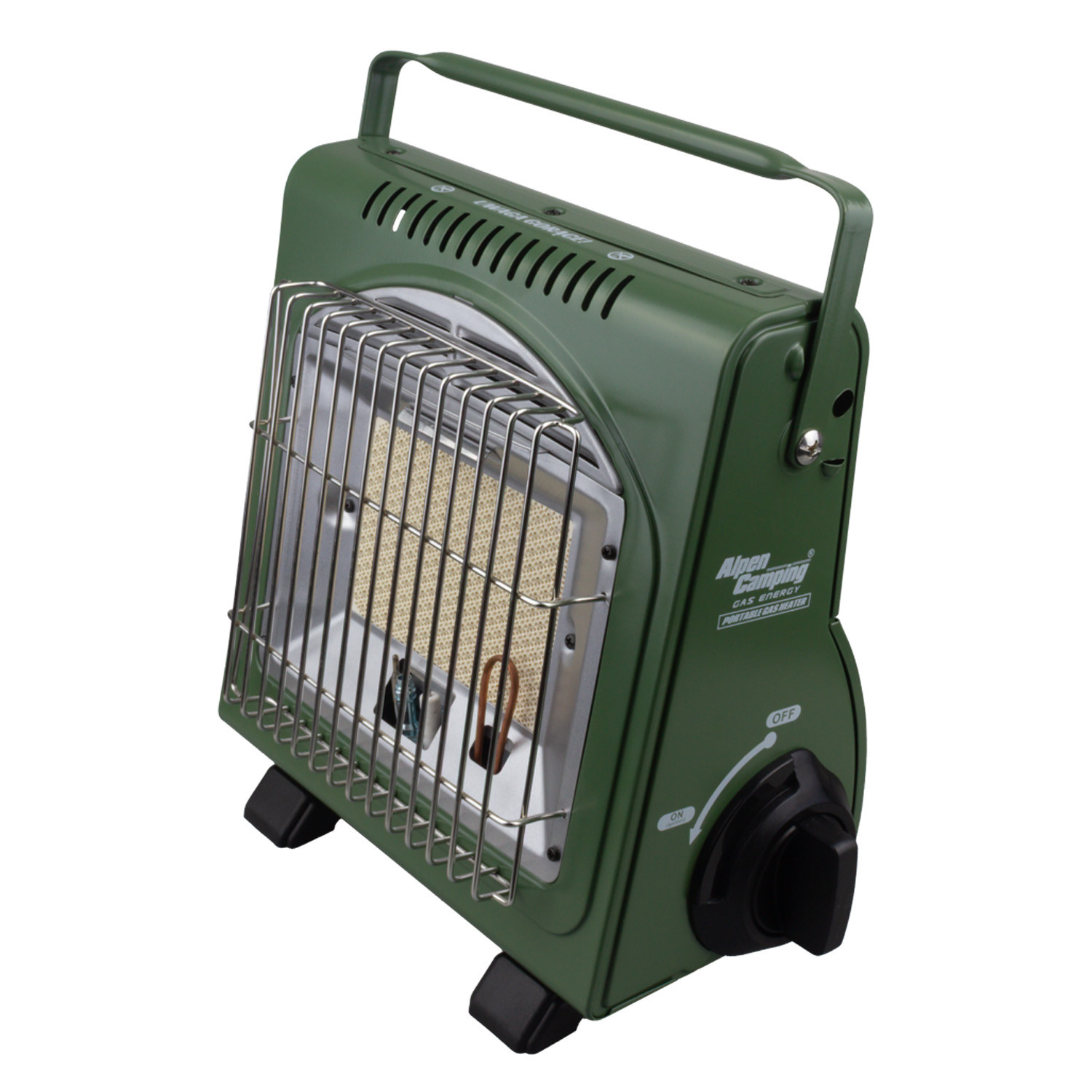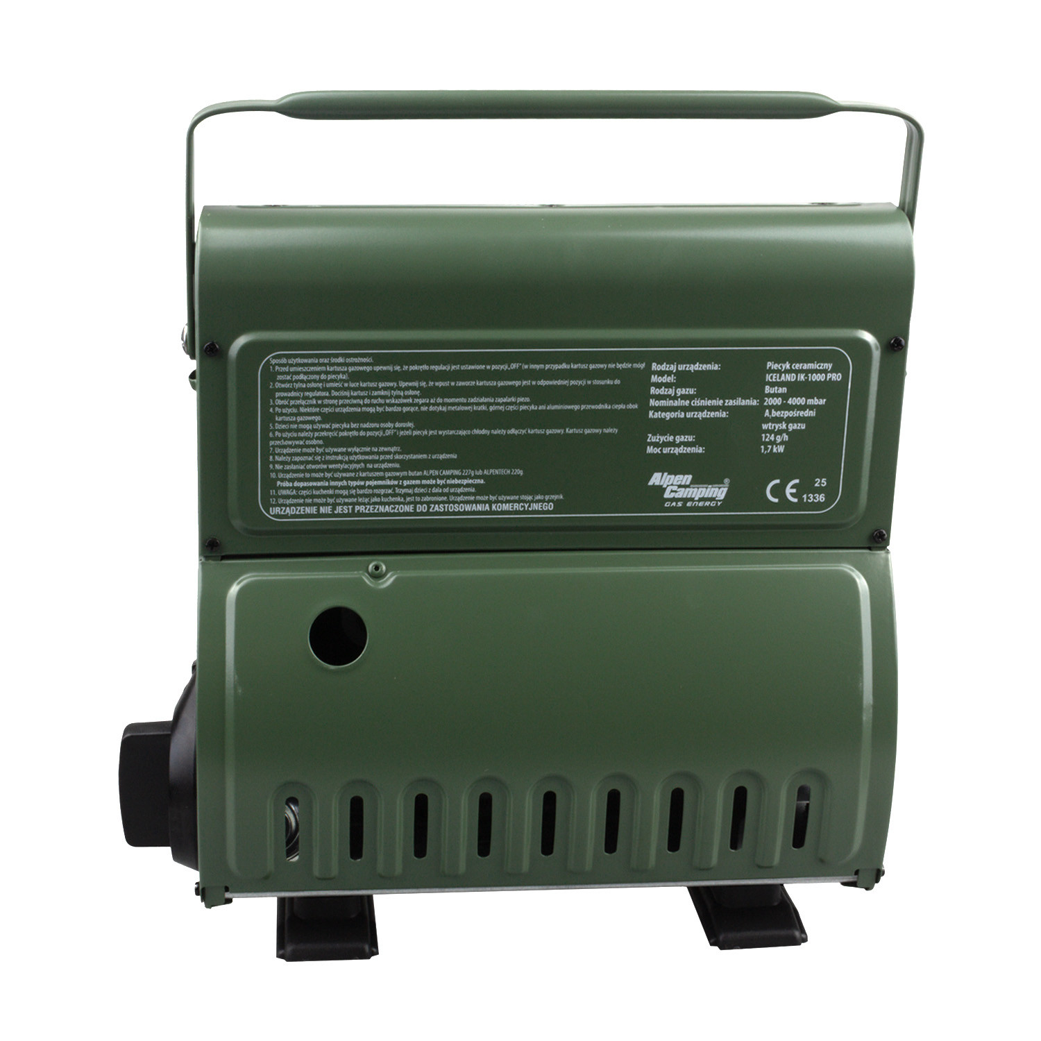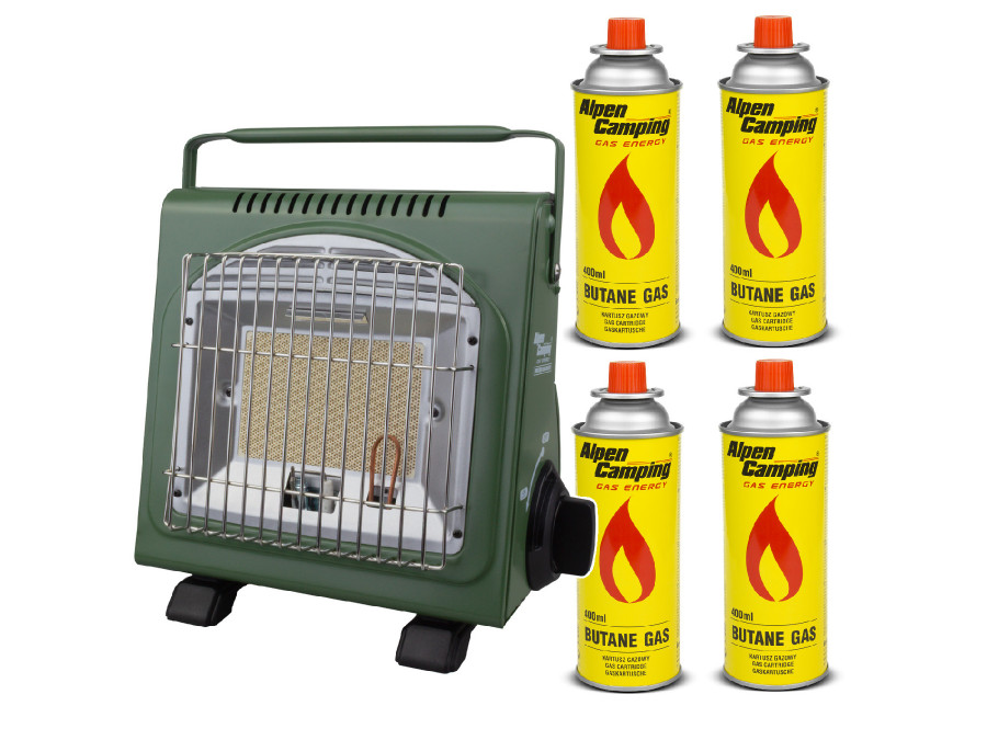 Przenośny piecyk gazowy Alpen Camping, 2w1 piecyk/kuchenka, zużycie gazu 108g/h, zapłon piezoelektryczny, IK1100 + 4 kartusze