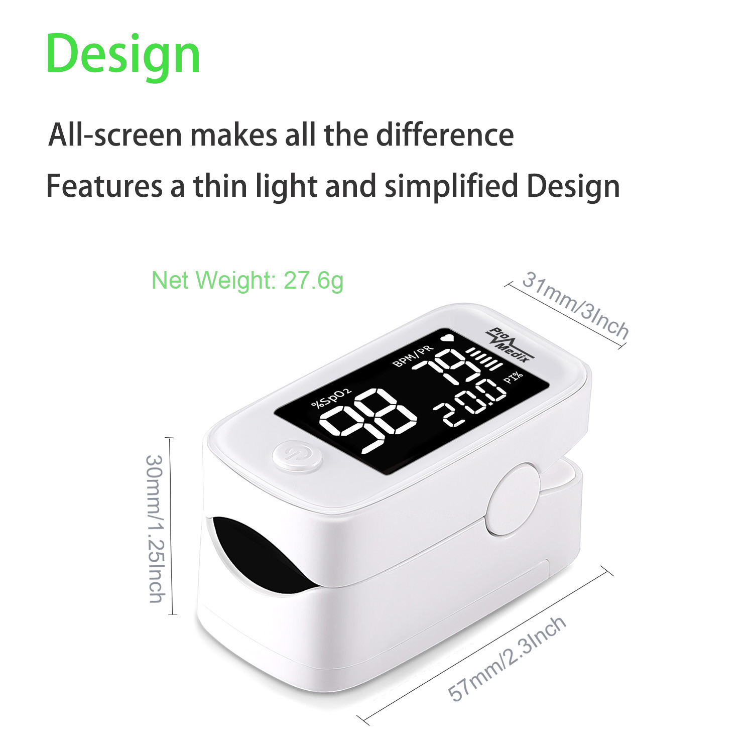 - Zakres wyświetlania SpO2: 30%-99%