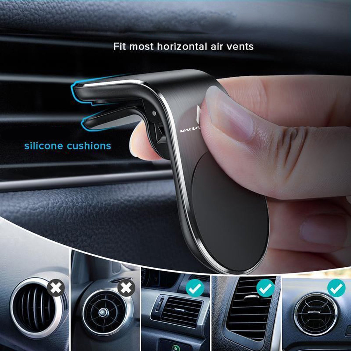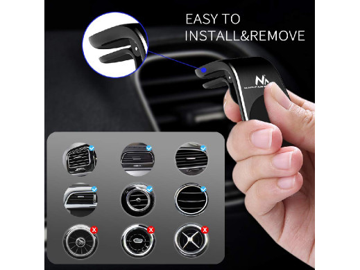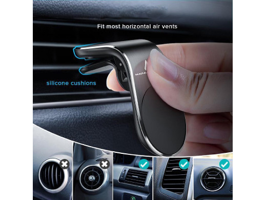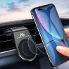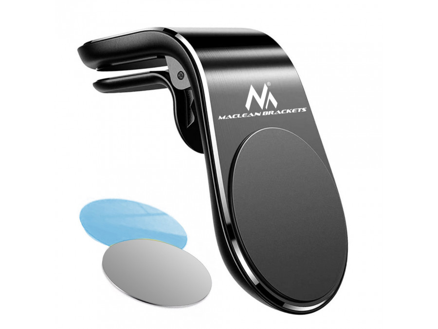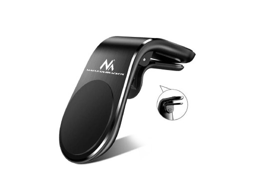 Uniwersalny, magnetyczny uchwyt samochodowy do urządzeń mobilnych mocowany w kratce wentylacji.