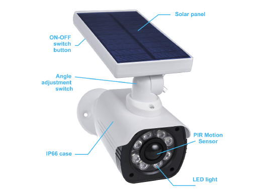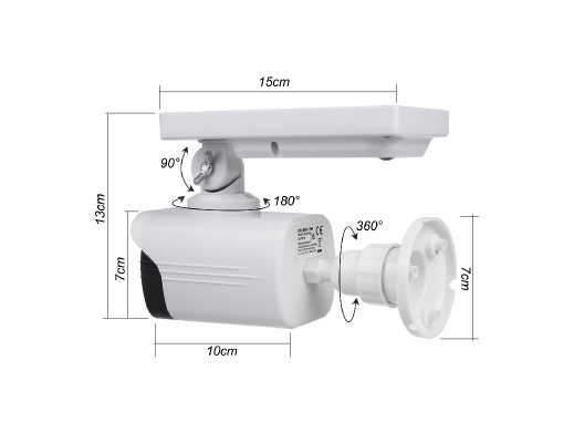 Największą skutecznością w działaniu cechują się atrapy kamer z czerwoną diodą LED (dzięki diodzie atrapa jest bardziej widoczna zwłaszcza nocą, w piwnicach, garażach, magazynach). Nasza atrapa dodatkowo posiada panel solarny, który zasila wbudowany akumulator, zapewniając pracę w nocy. Jest to bardzo praktyczne rozwiązanie ponieważ nie musisz się martwić o wymianę baterii jak te się wyczerpią.