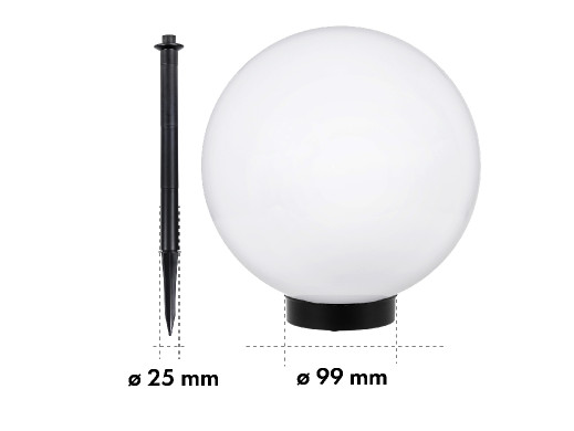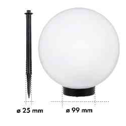 Ogrodowa solarna lampa LED w formie dużej mlecznej kuli o średnicy 15 cm to dekoracyjne oświetlenie, które doskonale nadaje się do aranżacji ogrodu lub innych zewnętrznych przestrzeni.