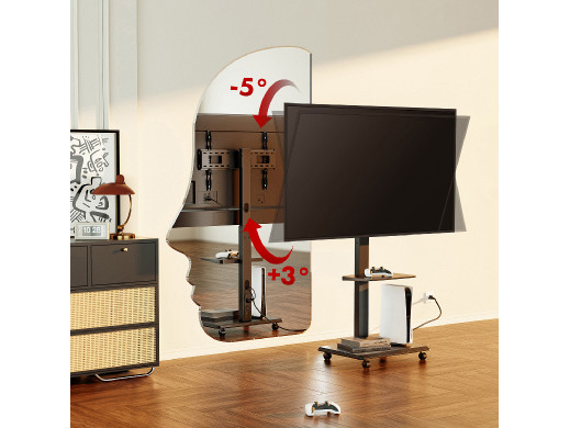 Stojak ER-304 B wyposażony jest dodatkowo w półkę na sprzęt RTV, np. odtwarzacze, konsole czy dekodery, z maksymalnym obciążeniem do 5 kg.