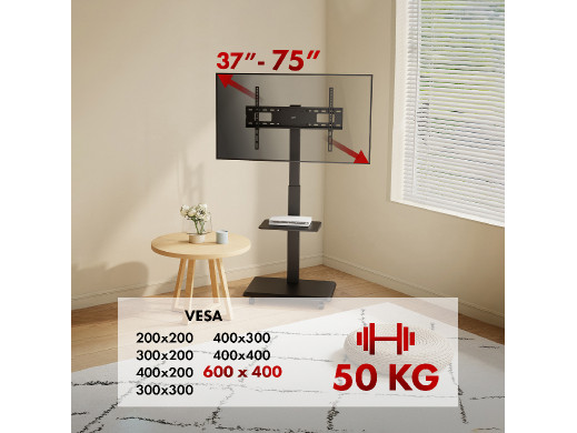 Mobilny stand/wózek do telewizora Ergo Office ER-304 B to wszechstronne i funkcjonalne rozwiązanie dla biur, sal konferencyjnych, szkół oraz przestrzeni domowych. Przeznaczony do ekranów o przekątnej od 37 do 75 cali, oferuje solidną i stabilną konstrukcję wykonaną z wysokiej jakości stali, która gwarantuje bezpieczeństwo użytkowania. Maksymalne obciążenie uchwytu wynosi 50 kg, co pozwala na montaż większości dostępnych na rynku telewizorów. Wózek obsługuje standardy VESA od 200x200 do 600x400 mm, zapewniając kompatybilność z szeroką gamą modeli wielu producentów, między innymi: Sony, LG, Samsung, Philips, Sharp, Panasonic, Toshiba, Grundig, Pioneer, JVC, Benq, Sanyo, NEC, Hyundai, Hitachi, Iiyama, TCL, Xiaomi.