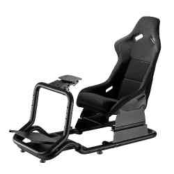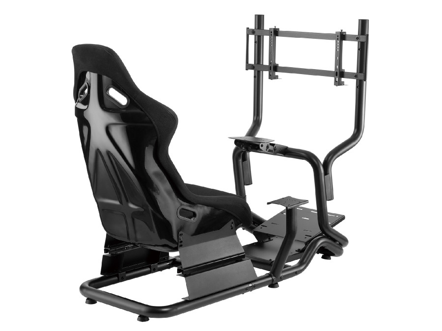 Kokpit wyścigowy zawiera wszystko, czego potrzebujesz, aby uzyskać najlepsze wrażenia z jazdy: fotel dla gracza, stojak na kierownicę z miejscem na kierownicę, pedały i dźwignię zmiany biegów oraz uchwyt do telewizora/monitora.
