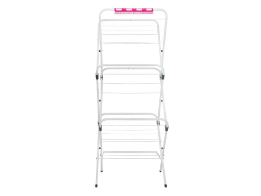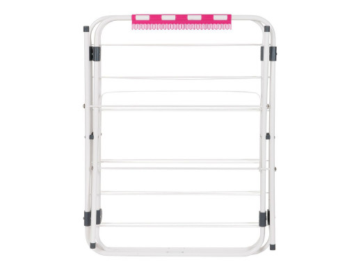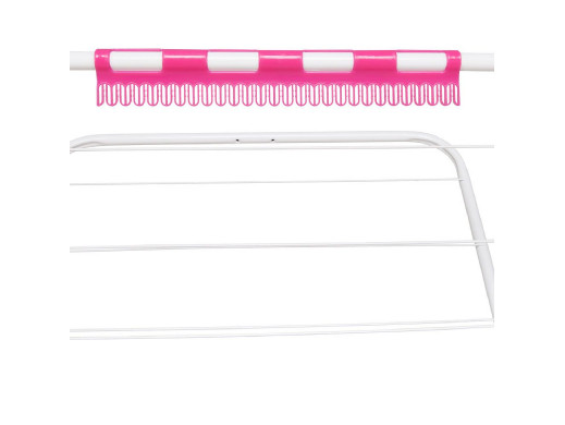 Dodatkowym atutem jest specjalny wieszak na drobne elementy garderoby, takie jak bielizna czy skarpetki, co pozwala maksymalnie wykorzystać dostępną przestrzeń suszenia. Złożona suszarka zajmuje bardzo mało miejsca, a blokada skrzydełek ułatwia jej przechowywanie i przenoszenie.