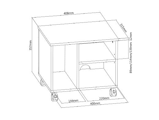 Dwie przestronne półki oraz przegroda zapewniają dużo miejsca na dokumenty i artykuły biurowe. Na blacie szafki można przechowywać drukarkę lub skaner.