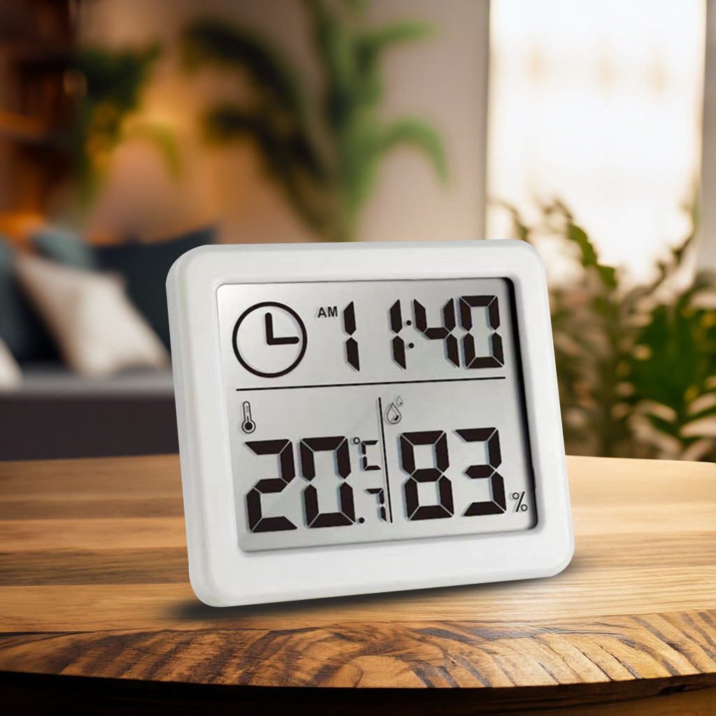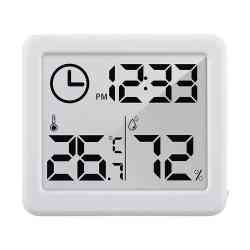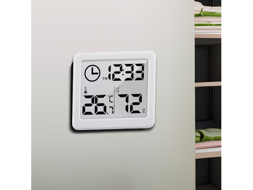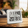 Czytelny ekran wyświetla jednocześnie temperaturę, wilgotność oraz godzinę.