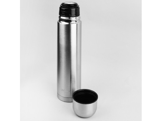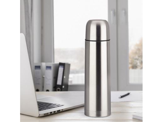 Praktyczny termos o pojemności 1000 ml, przeznaczony do zimnych i gorących napojów. Wykonany ze stali nierdzewnej 304 i tworzywa sztucznego. Wyposażony w podwójne ścianki, dzięki którym temperatura napoju jest utrzymana przez długi czas, izolacja próżniowa. Odkręcana pokrywka z systemem otwierania za pomocą przycisku „open-close” i wygodna zakrętka do nalewania. Zapewnia utrzymanie temperatury zimnych napojów ponad 24 godz., utrzymanie temperatury gorących napojów – ponad 12 godz. Szczelne zamknięcie (uszczelka wewnątrz zakrętki), wysoka odporność na uszkodzenia. Higieniczny i łatwy do mycia, nie pochłania zapachów. Pokrowiec z paskiem do łatwiejszego przenoszenia w komplecie.