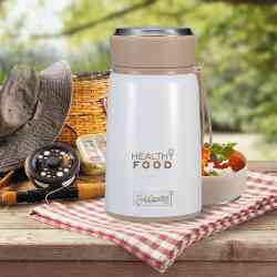 Praktyczny termos jednokomorowy o pojemności 530 ml, przeznaczony zarówno do gorących posiłków jak i zimnych (np. lodów). Wykonany z wysokiej jakości stali nierdzewnej 304 i tworzywa sztucznego, izolowany próżniowo. Bardzo długo utrzymuje temperaturę, jest łatwy do czyszczenia i pielęgnacji. W komplecie znajduje się składana łyżeczka. Nakrętka może służyć jako miseczka. Wyposażony w silikonowy pasek do przenoszenia.