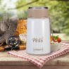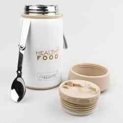 Praktyczny termos jednokomorowy o pojemności 800 ml, przeznaczony zarówno do gorących posiłków jak i zimnych (np. lodów). Wykonany z wysokiej jakości stali nierdzewnej 304 i tworzywa sztucznego, izolowany próżniowo. Bardzo długo utrzymuje temperaturę, jest łatwy do czyszczenia i pielęgnacji. W komplecie znajduje się składana łyżeczka. Nakrętka może służyć jako miseczka. Wyposażony w silikonowy pasek do przenoszenia.