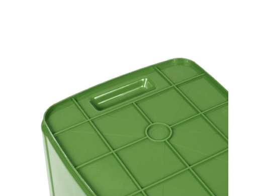Uchwyt do przenoszenia może służyć również jako uchwyt papieru toaletowego, a wgłębienie znajdujące się dnie wiadra ułatwia jego opróżnianie.