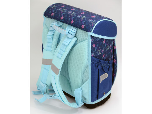 - Dwustopniowa regulacja szelek oraz pas piersiowy odciążają kręgosłup i wymuszają prawidłową postawę dziecka, utrzymując tornister we właściwym położeniu