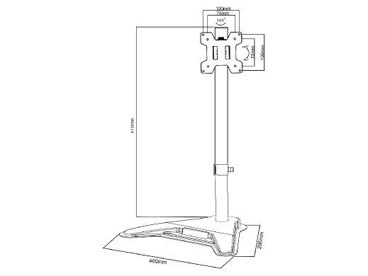 Uniwersalny, wolnostojący uchwyt biurkowy, służący do montażu monitorów różnych marek o wadze do 8 kg i przekątnej ekranu od 13" do 27".