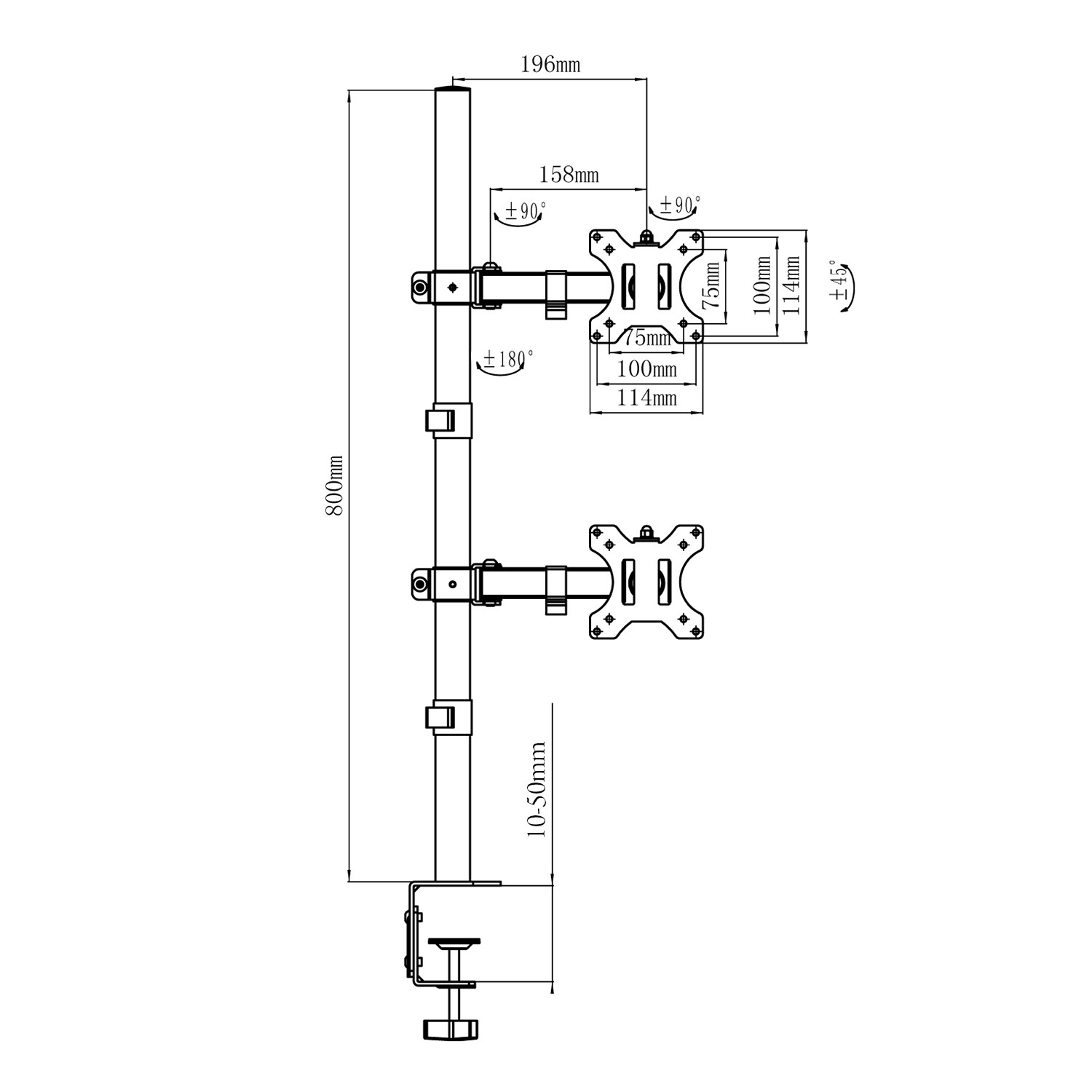 - Możliwość montażu do blatu biurka lub stołu o grubości: 10-50 mm