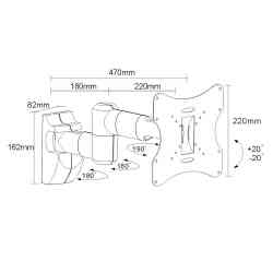 - Przeznaczony dla TV 23" do 50" (lub większych, jeśli ich waga nie przekracza 30 kg, a standard VESA jest zgodny z uchwytem)