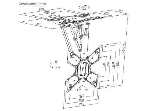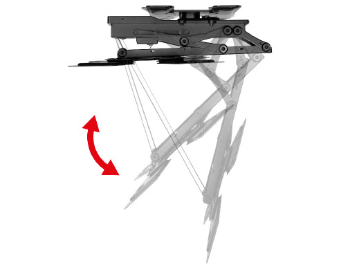 Dzięki dołączonemu pilotowi możesz bezstopniowo regulować nachylenie uchwytu w zakresie od 0 do 75°, a także obracać ekran o 90° bez konieczności wstawania. Dodatkowo pamięć pilota pozwala na zapisanie dwóch wybranych pozycji położenia, dzięki czemu można ustawić telewizor w swojej ulubionej pozycji przez naciśnięcie tylko jednego przycisku.