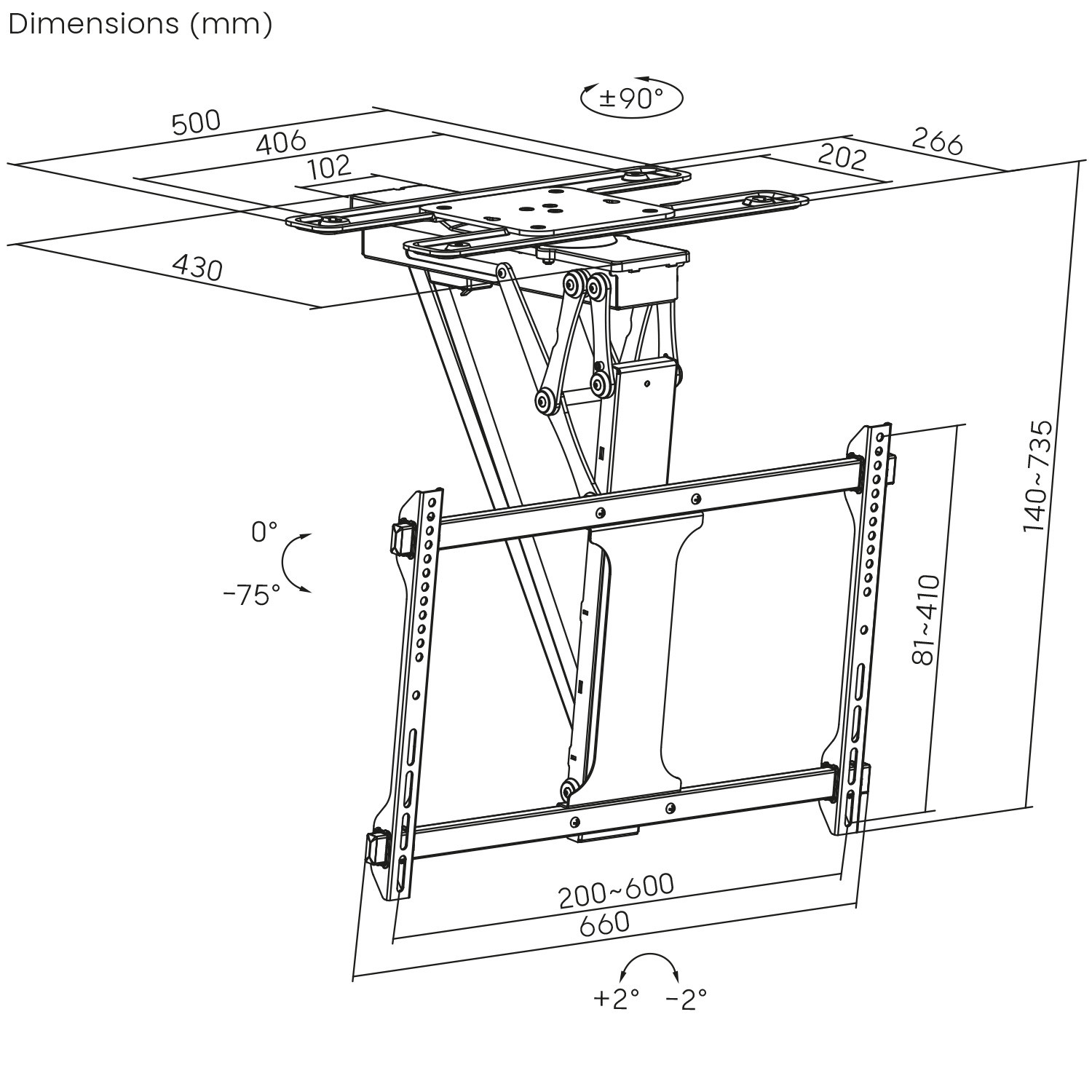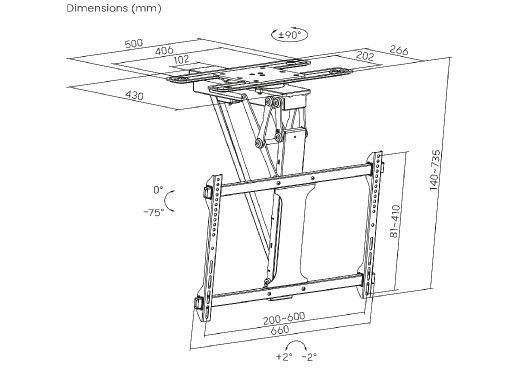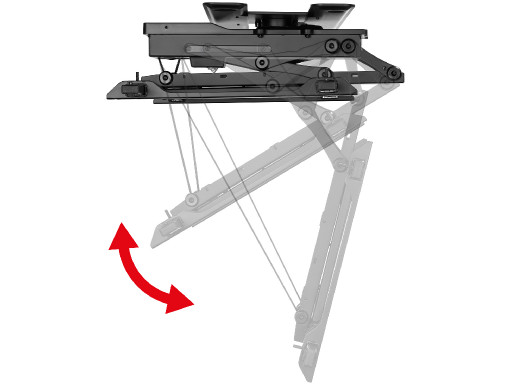 Dzięki dołączonemu pilotowi możesz bezstopniowo regulować nachylenie uchwytu w zakresie od 0 do 75°, a także obracać ekran o 90° bez konieczności wstawania. Dodatkowo pamięć pilota pozwala na zapisanie dwóch wybranych pozycji położenia, dzięki czemu można ustawić telewizor w swojej ulubionej pozycji przez naciśnięcie tylko jednego przycisku.