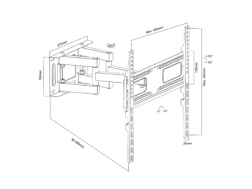 - VESA: 75x75, 100x100, 200x100, 200x200, 300x300, 400x200, 400x400 mm