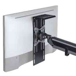 Uchwyt może być zamocowany bezpośrednio do otworów montażowych z tyłu monitora, lub do uchwytu zamocowanego do monitora. Kompatybilny jest z otworami montażowymi zgodnymi ze standardem VESA 100x100 mm.
