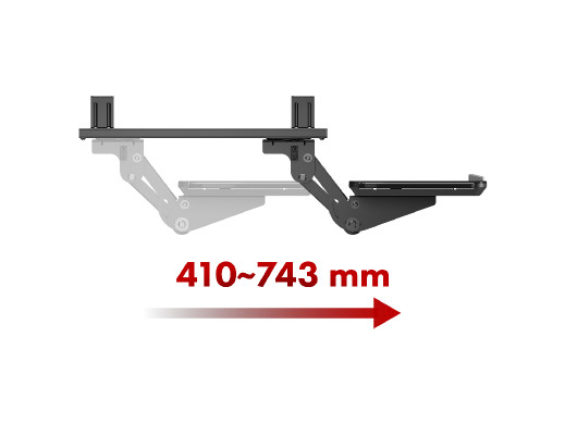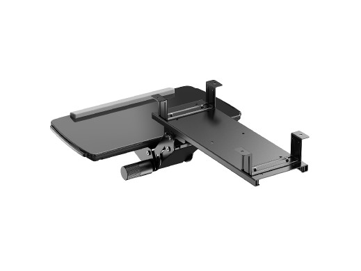Funkcjonalność uchwytu została rozszerzona o wysuwaną półkę na myszkę, którą można wysunąć zarówno po prawej, jak i lewej stronie – co czyni ten model idealnym zarówno dla osób prawo-, jak i leworęcznych.