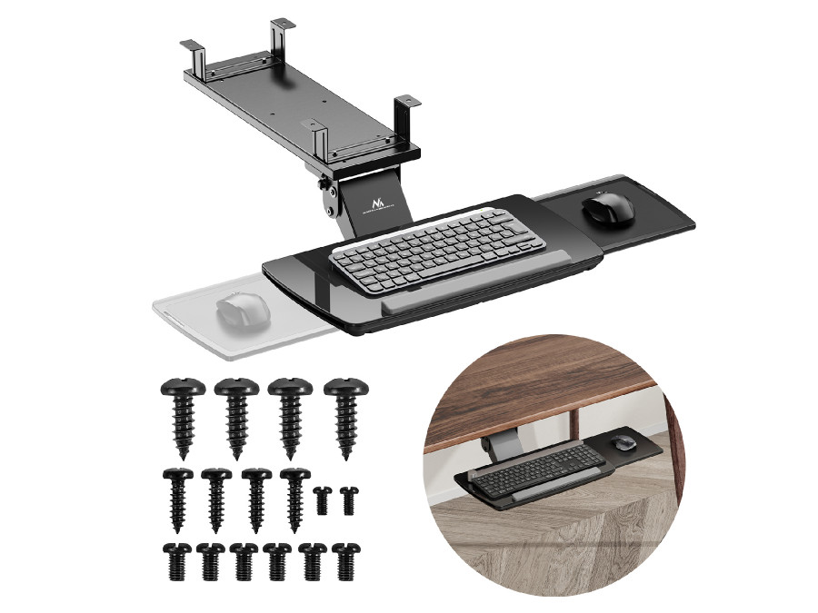 Uchwyt / półka na klawiaturę Maclean, montaż do blatu biurka, regulowany, max. 5kg, czarny, MC-156 B