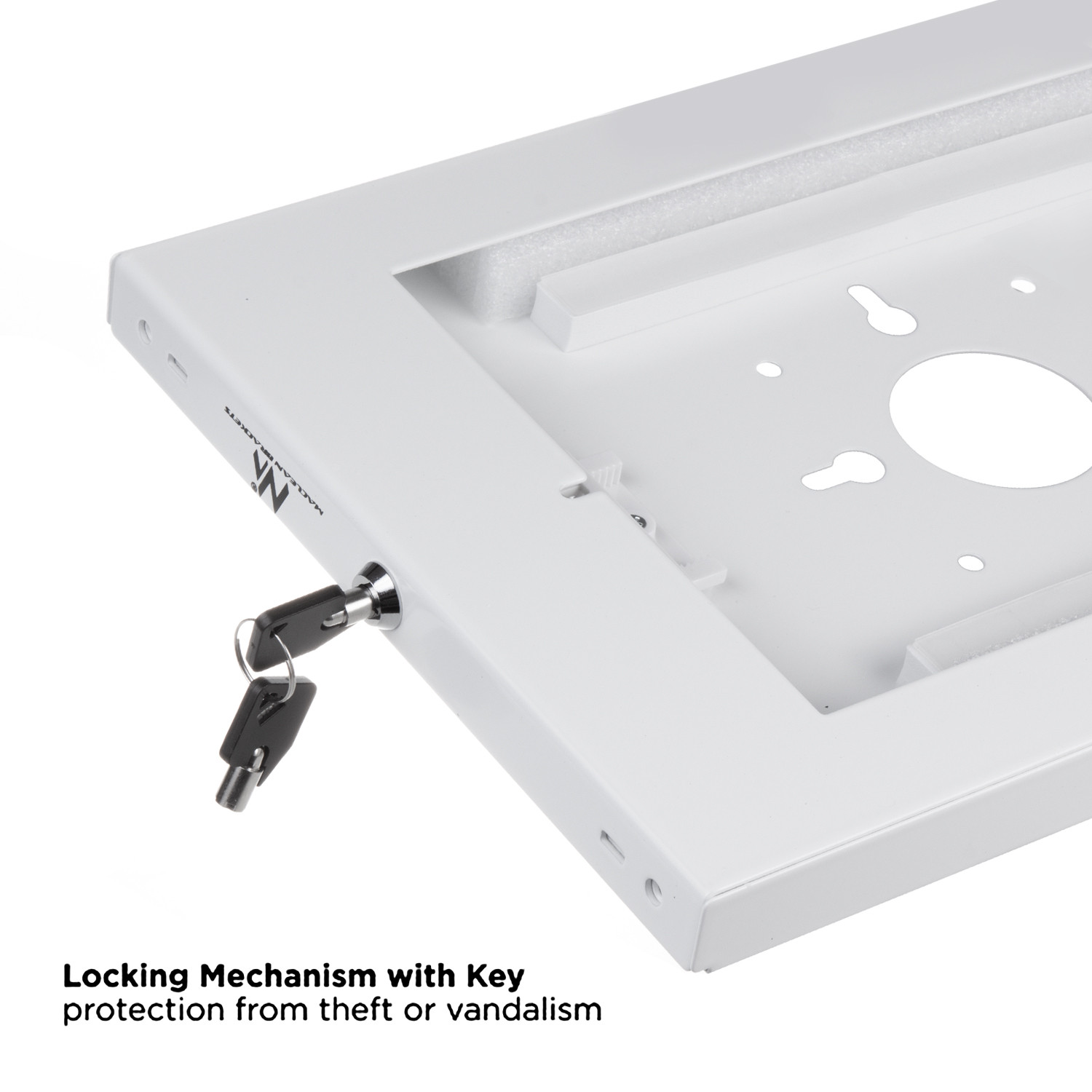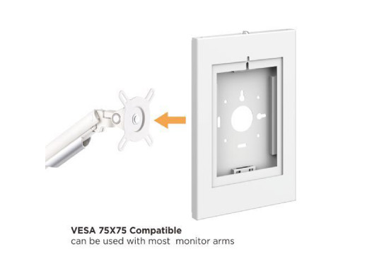 Obudowa na tablet MC-474W do montażu na ścianie cechuje się wysoką jakością wykonania oraz wandaloodporną konstrukcją, dzięki której zapewnia maksymalny poziom bezpieczeństwa dla umieszczonego w niej urządzenia. Prezentowana obudowa została odpowiednio przystosowana do montażu zarówno na naściennych powierzchniach jak i uchwycie zgodnym ze standardem VESA 75x75.