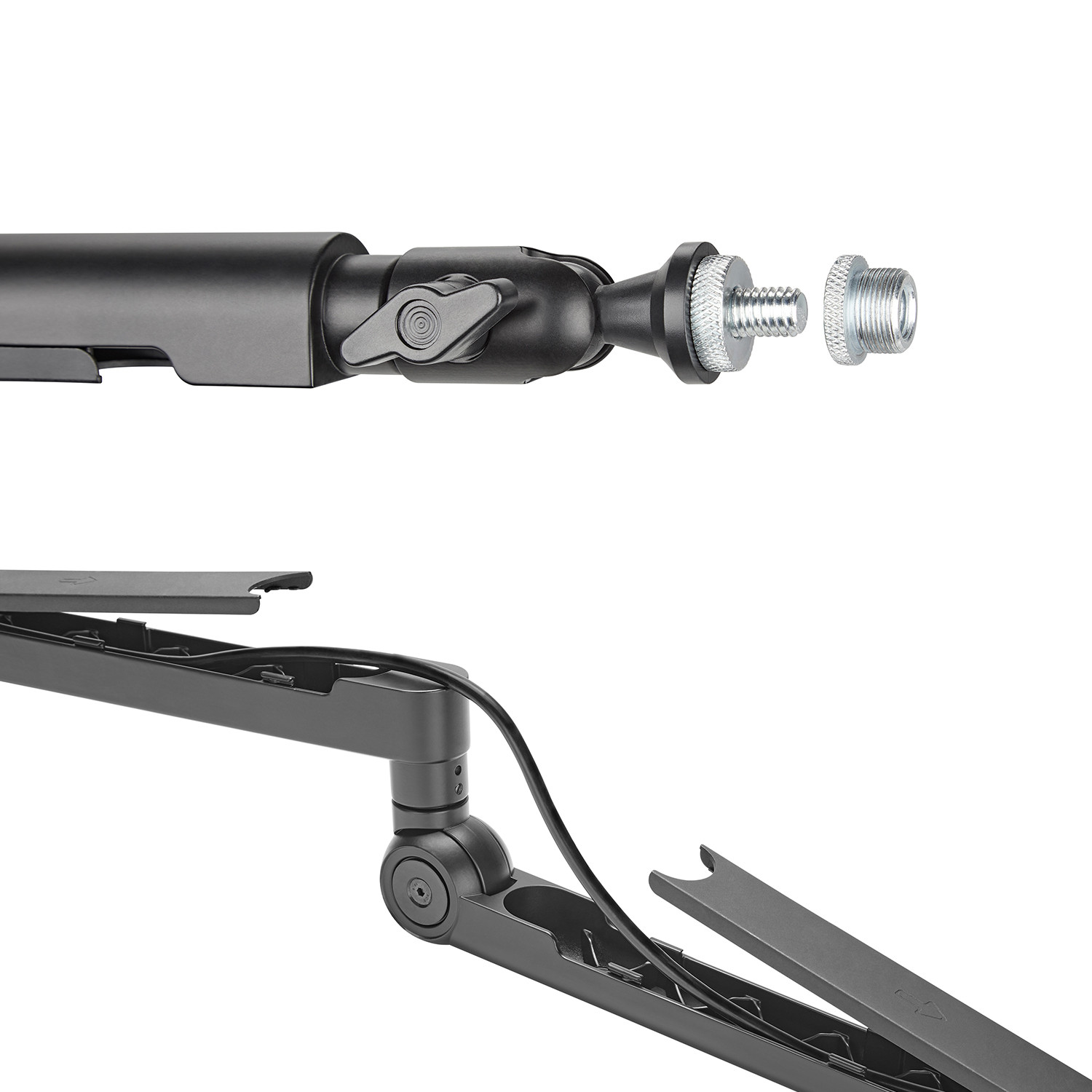 Dzięki uniwersalnym gwintom 3/8" i 5/8" uchwyt kompatybilny jest z większością mikrofonów studyjnych dostępnych na rynku.