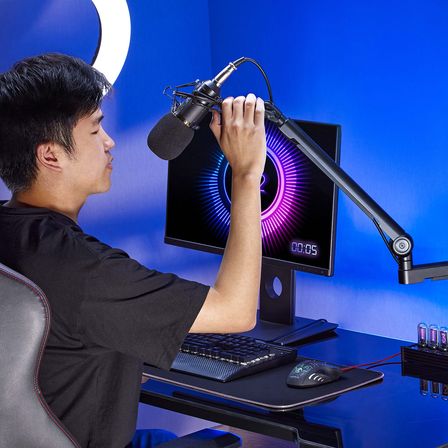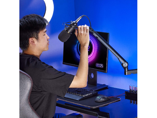 Statyw nadaje się zarówno do zastosowania w profesjonalnym studiu do nagrywania dźwięku lub audycji radiowych, ale również do użytku domowego, np.do streamingu.