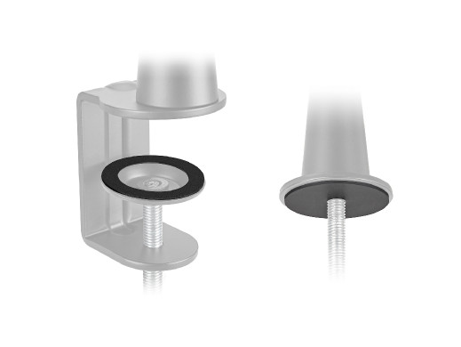 Uchwyt umożliwia zamocowanie zarówno do krawędzi blatu biurka, jak i w otworze na przewody.