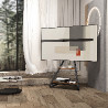 Uchwyt wolnostojący pod TV / narożny Maclean, w stylu bauhaus, dwupoziomowe drewniane półki, 40kg max, 37-75'', MC-455