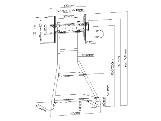 Uchwyt wykonany jest z trwałych materiałów. Solidna konstrukcja składa się z rur o średnicy 38 mm, które gwarantują stabilność i bezpieczeństwo Twojego telewizora oraz innych urządzeń.