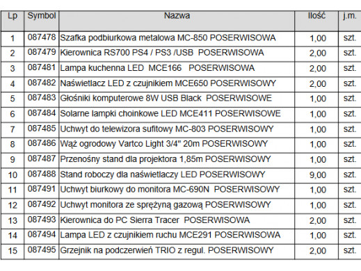Dokładna lista produktów znajduje się na zdjęciu nr 5