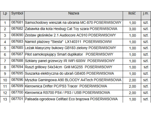 Mix produktów pochodzących ze zwrotów konsumenckich, nadwyżek magazynowych, reklamacji.