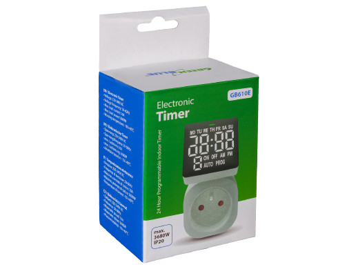 Włącznik czasowy - timer cyfrowy GreenBlue, max. obciążenie 16A, IP20, GB610 E