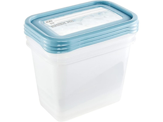 Zestaw pojemników na żywność z etykietą wielokrotnego zapisu.