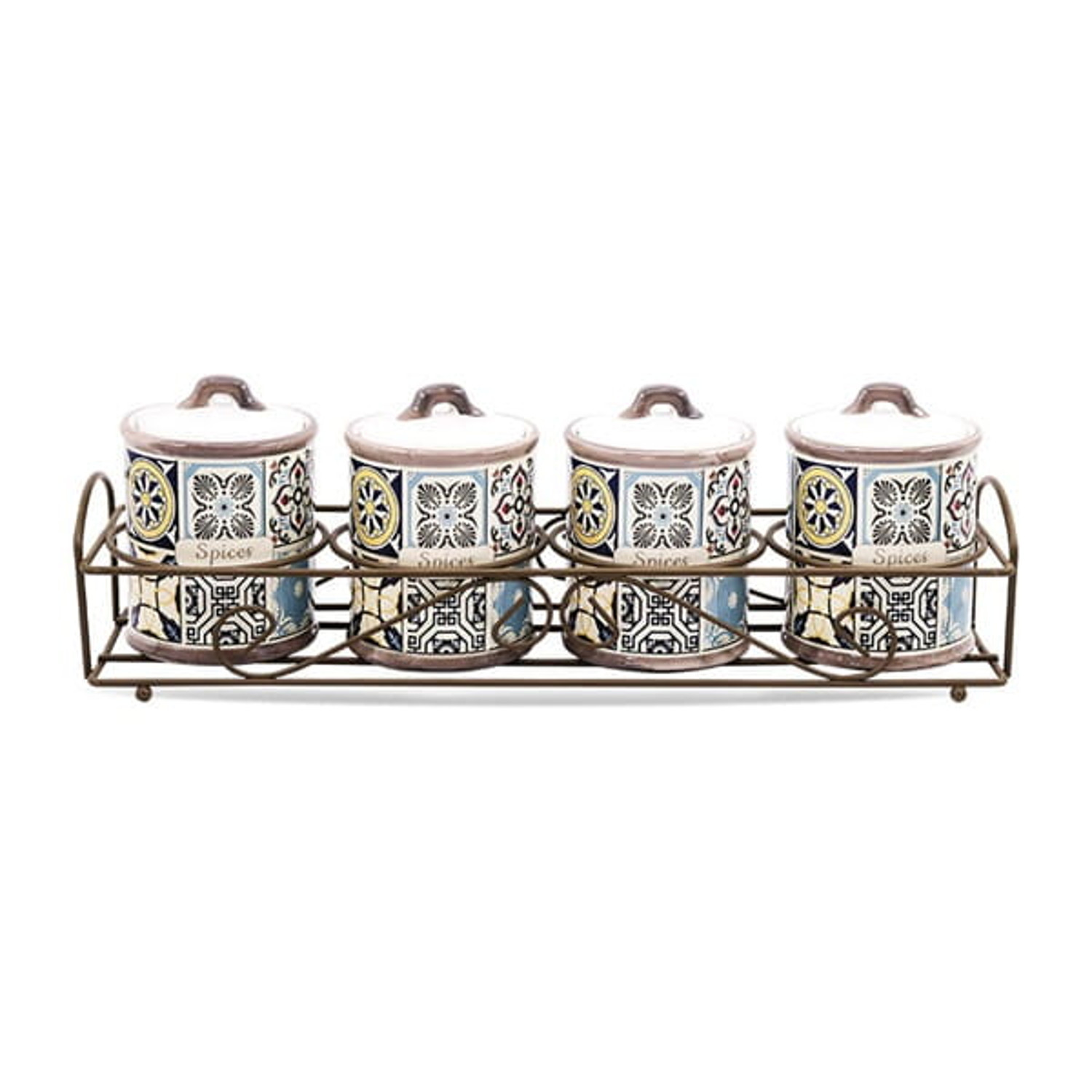 Zestaw ceramicznych pojemników Holiday in Porto Maestro, 5 elementów, Pojemność 200ml, Idealne do przypraw, Z metalowym stojakie