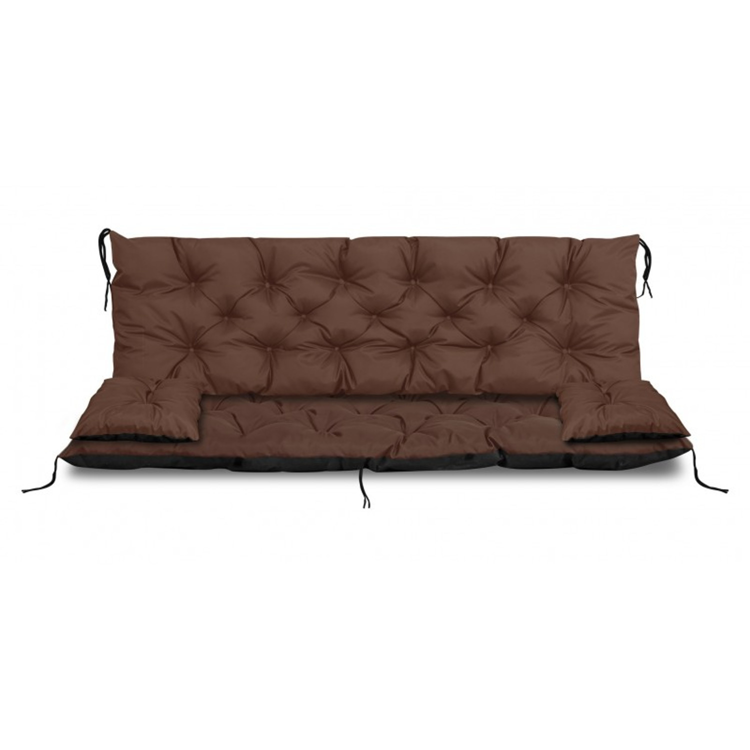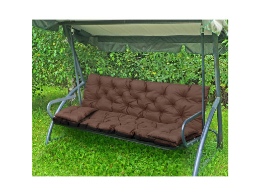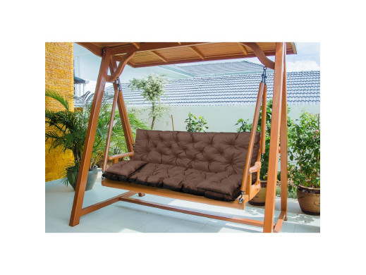 Zestaw składa się z dwóch zszytych ze sobą poduszek tworzących siedzisko i oparcie. Na każdym rogu umieszczone są sznurki, dzięki którym możesz poduszki przymocować do ławki lub huśtawki.